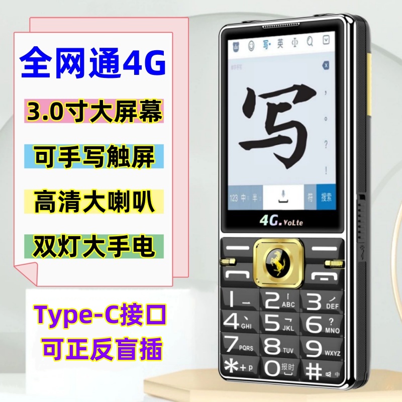 新款全网通4G老年人手机3.0寸大屏手写触摸带震动大喇叭老人手机